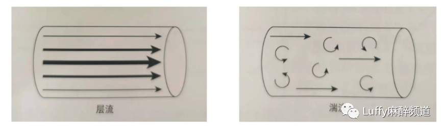 解析:肺内的气流取决于几个因素。很重要的一点是要认识到有2种不同的气流模式。层流是一种有序的模式,所有的分子沿着管道分层直线移动。层流时的流速在中心最快,外周最慢(见图4)。肺系统中,层流主要发生在小气道(<1mm)。湍流是一种杂乱无章的运动形式,腔内往往存在漩涡,主要存在于大、中气道、分叉处、阻塞处以及管腔突然变窄处。这些涡流妨碍了前向的分子流动,增加了达到给定流速所需要的能量输入。