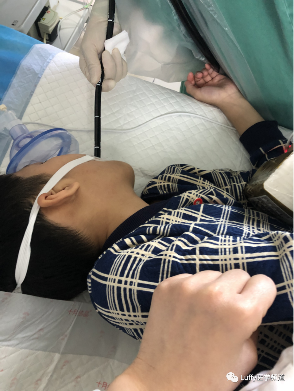 术后监测,患儿在检查后恶心呕吐的机率增加,谨防恶心呕吐、反流误吸的可能。彻底清醒后,观察没有操作的并发症及麻醉并发症,转归病房。