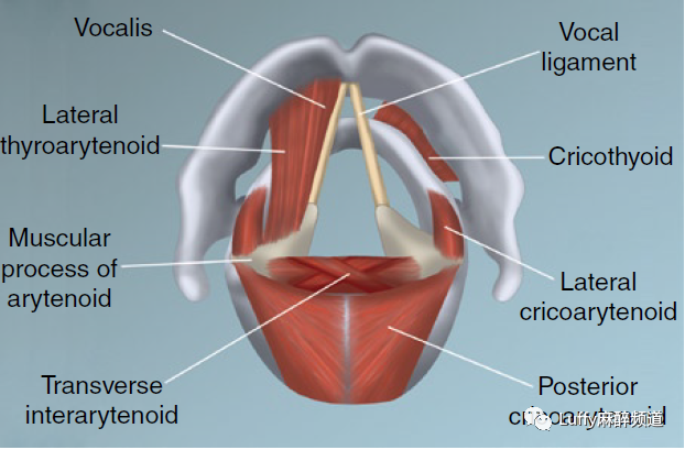 喉的内在肌肉(从后向前上视图):在婴儿中,所有内在肌肉的位置和功能与成人相同