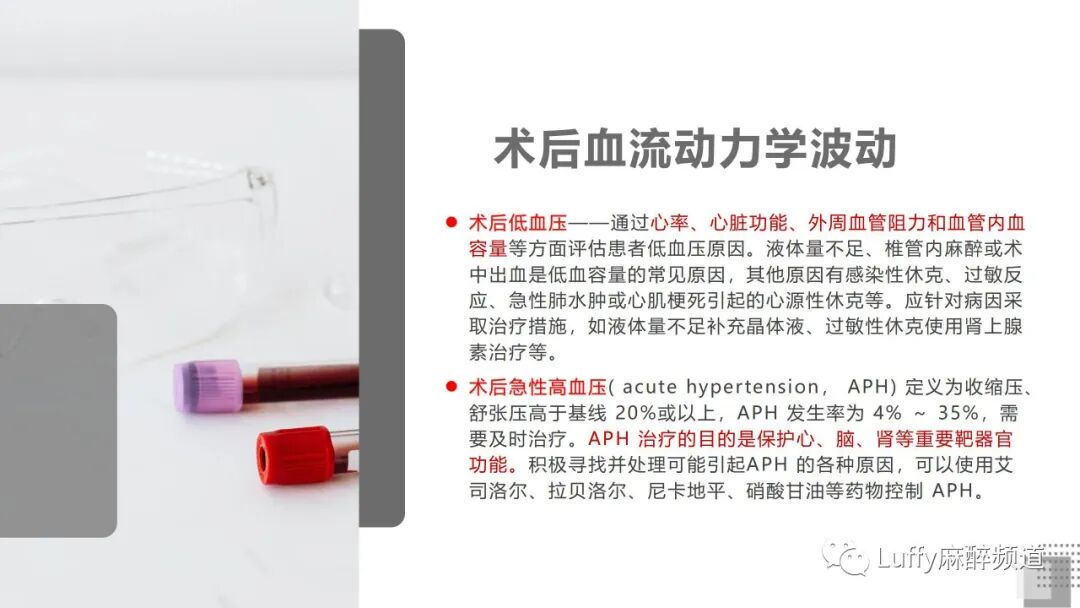 术后早期治疗,包括麻醉和手术后早期并发症的发现和治疗;