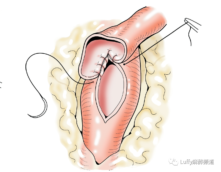 有时,人们会遇到这样一种弥漫性病变的冠状动脉,以至于冠状动脉内膜切除术似乎是获得令人满意的远端吻合的唯一选择。一般而言,冠状动脉内膜切除术应保留用于无法确定远端吻合的适当触地点的罕见情况。通过动脉内膜切除术实现良好的远端终点可能很困难,因此该技术与移植失败率增加有关。右冠状动脉内膜切除术比 LAD 或侧壁血管更常见。动脉内膜切除术(图1.15a-e)的开始是在硬管腔之间建立一个解剖平面。斑块和动脉壁的外中层。可以使用精细组织提升器来启动斑块解剖,注意避免破坏外动脉壁。一旦动脉粥样硬化的腔内斑块被钝包围,核心就被牢牢抓住,花生解剖器可以横向使用,以在斑块被轻轻收回时提供反牵引力。在近端,一旦核心斑块的合理部分缩回或遇到阻力,应横切核心并使近端斑块回缩到动脉中。远端执行相同的过程,希望去除动脉的锥形远端模型。去除动脉内膜切除术核心后,仔细检查动脉壁是否有损伤或残留斑块。在这一点上,吻合可以构建到相对无病的动脉。