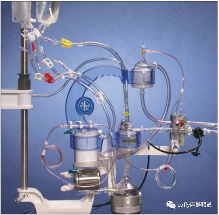 图3使用涂层表面减少凝血和炎症,去除静脉储备和多余导管以减少血液稀释的典型小型封闭式体外循环回路。