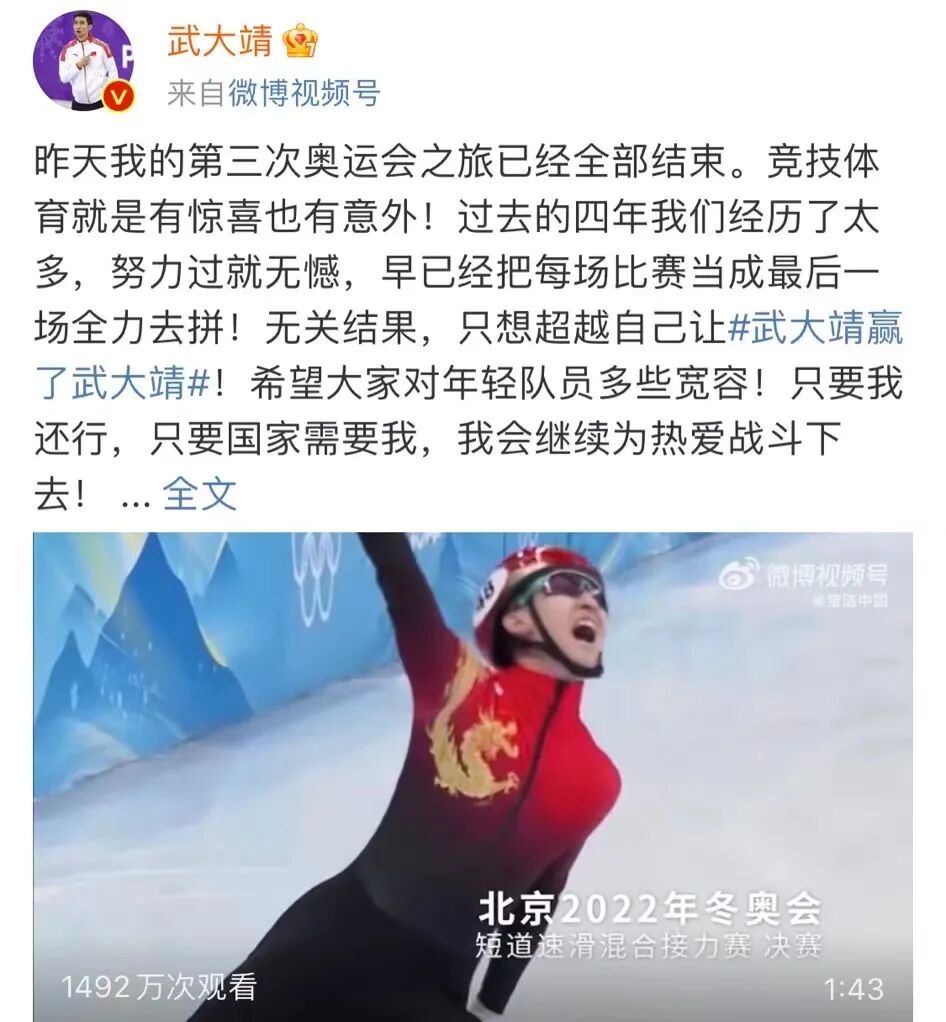 武大靖也发布微博,说只要国家需要,身体允许,自己还会一直站在冰场上,绝不认怂。