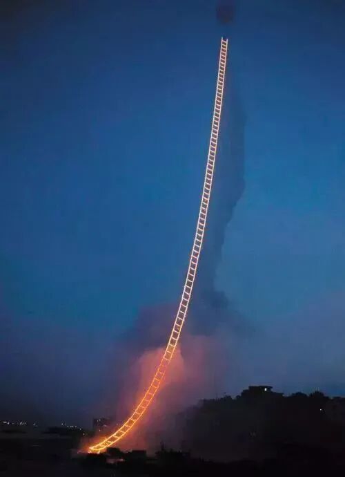 2015年6月的一天,晨光熹微时,一架宽5.5米、高500米的天梯,沿着红红的火苗,窜向浩瀚无际的夜空,最后绵延了100米。