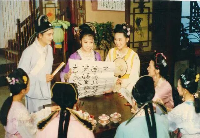沉浸在爱情里李香君和侯方域,看花对盏,诉说衷肠。