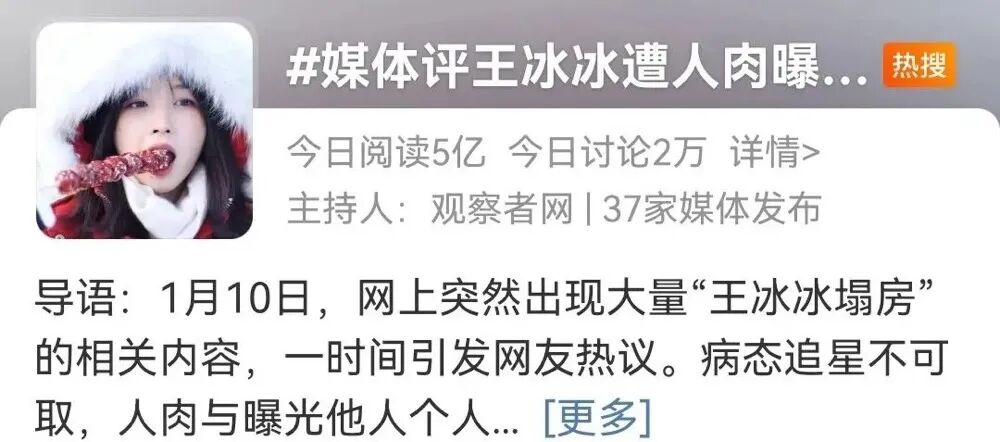 豆瓣有知情人士透露,这次人肉王冰冰的爆料者,曾经也是她的粉丝,可能因为发现了她不符合心目中“完美”的模样,就狠狠揪住各种蛛丝马迹发酵,恨不得王冰冰在网络的舆论环境里被狠狠“批斗”。