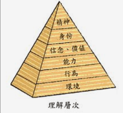 理解层次把人的思维分为环境、行为、能力、信念、身份和精神(灵性)六个层次: