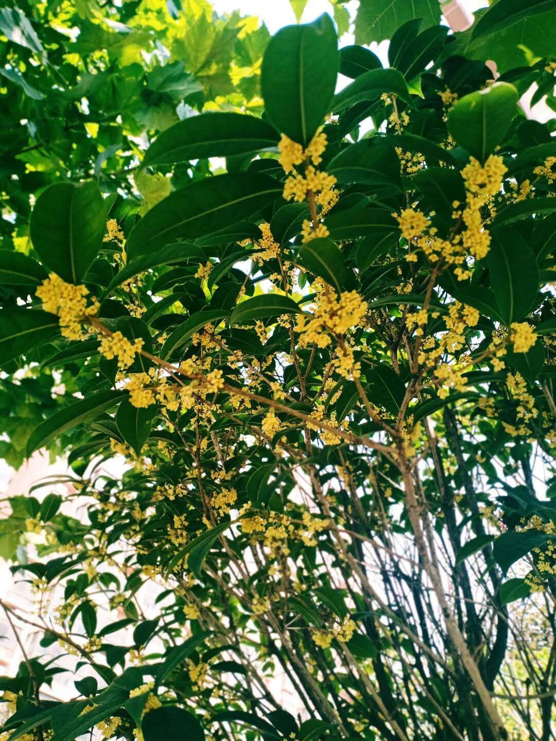循着香味,找到另一条两边栽满桂花树的小路。细细端详,小米粒般细碎的黄色花朵,那么不起眼,居然有这么浓郁好闻的味道。