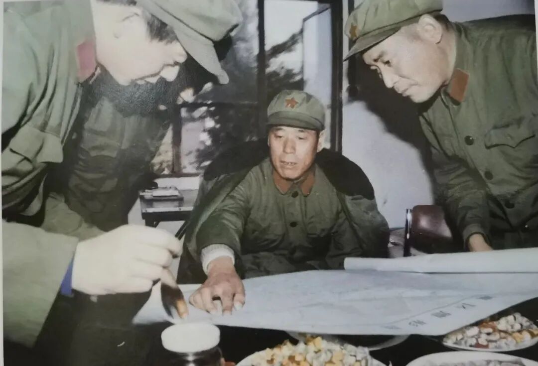 (团长陈传发(前排左一)、政委赵传喜(前排左二)、副团长张景华(后排)、参谋长杨顺清(前排右一)指挥作战)