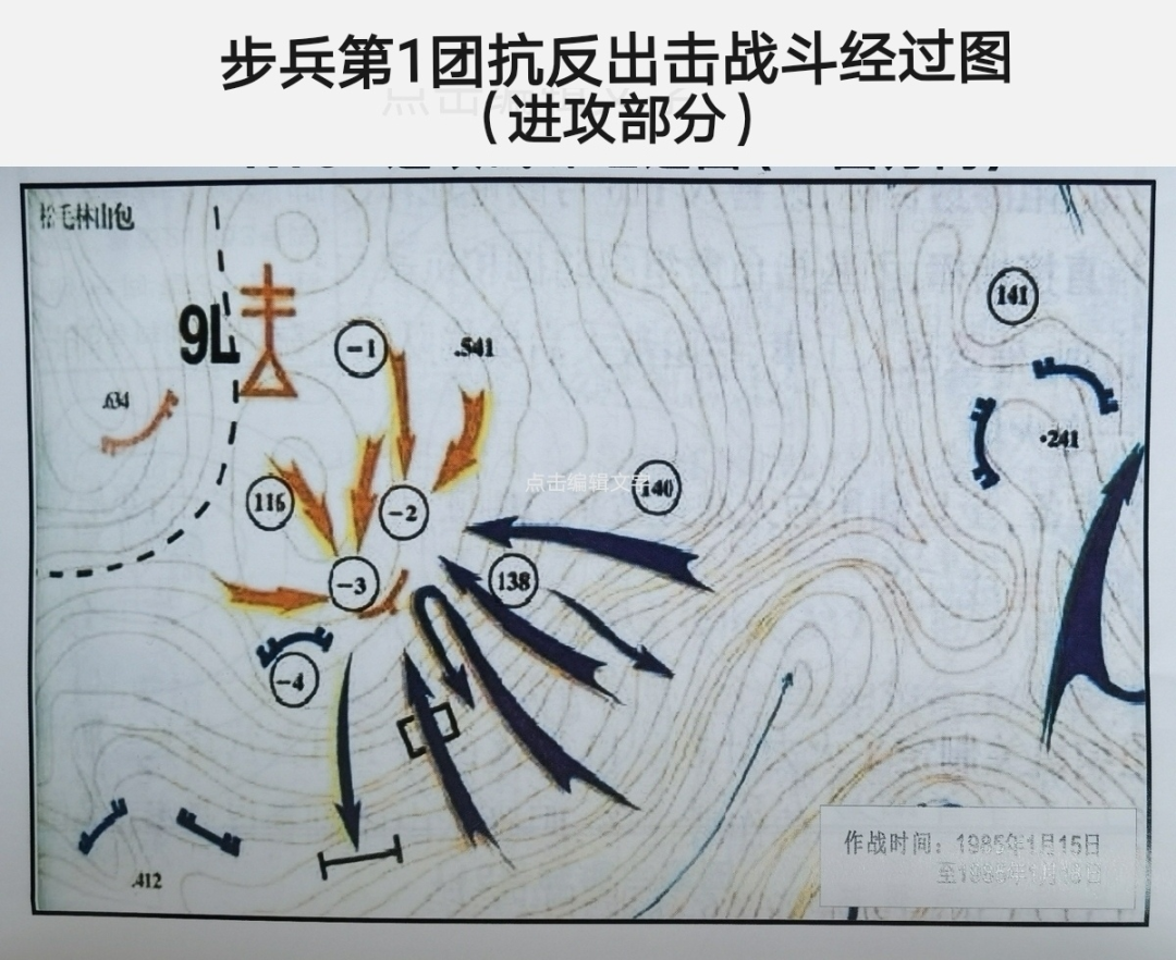 在此之前,12月24日1团组织过一次前推阵地的对负2号、负3号高地的攻击行动。虽然我部分兵力突入敌阵并占领其部分表面阵地,但立足未稳即遭敌火力报复和敌支援分队反击,加之后续攻击兵力受敌明暗多种火力压制,在我伤亡33人歼敌60余人的情况下,为避免增大伤亡,团前指报团基指经军师同意,果断向攻击分队下达了停止攻击、迅速回撤的命令。因为这个伤亡和歼敌比例,显然不符合我“以小的代价换取大的胜利”的作战指导,继续打下去“得不偿失”。收拾这两个高地的敌人只是时间问题,所以就有了这次“1.15”战斗出击拔点攻占敌负2号、负3号高地的任务。