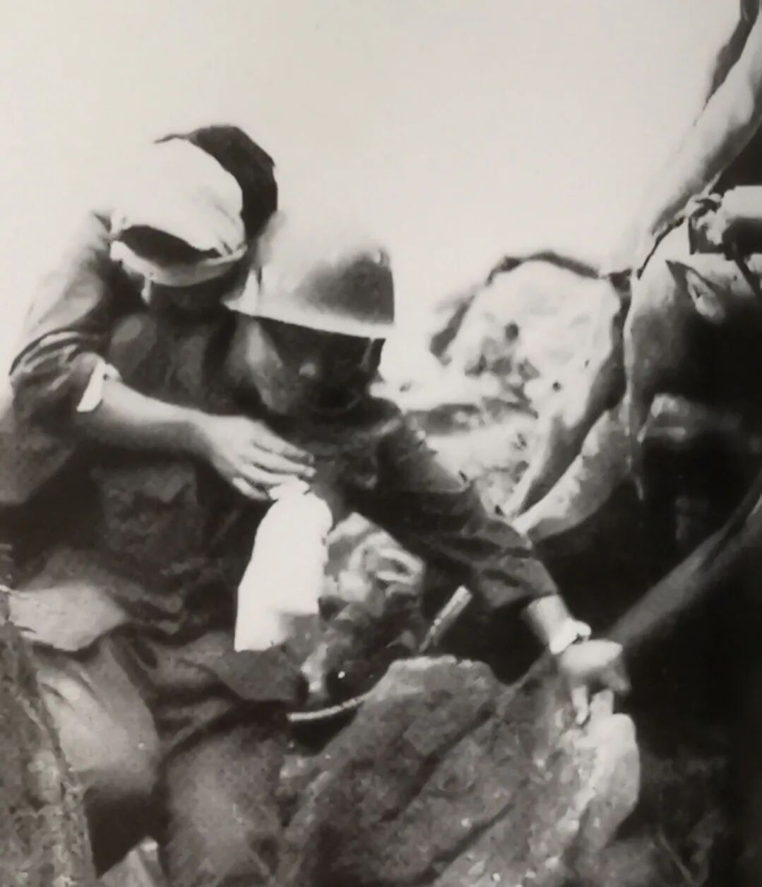 (利用短暂的战斗间隙抢救负伤战友)