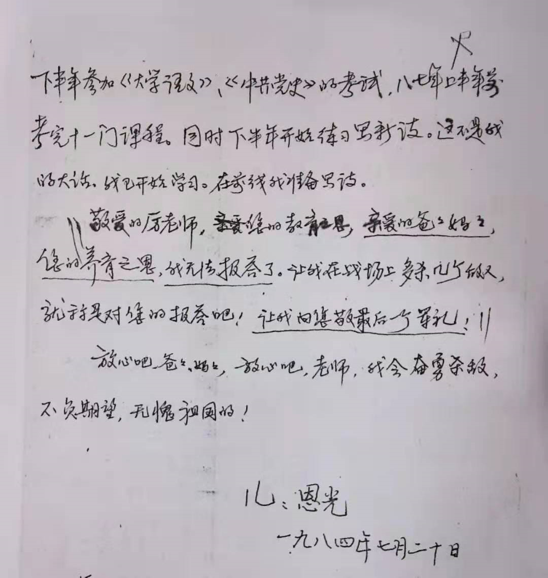 (吴恩光烈士的家书片段)