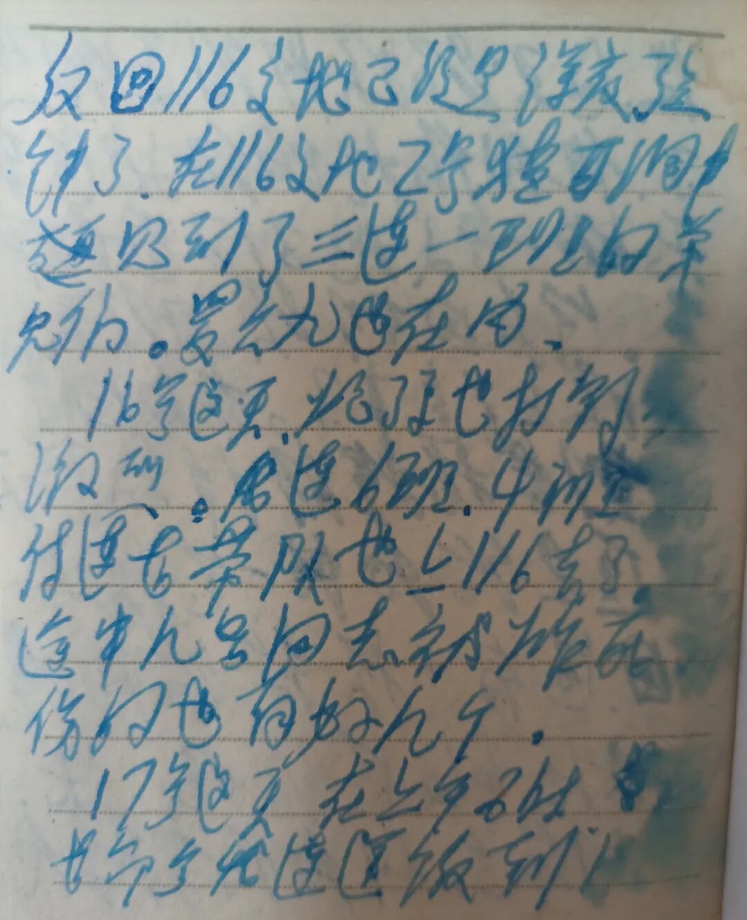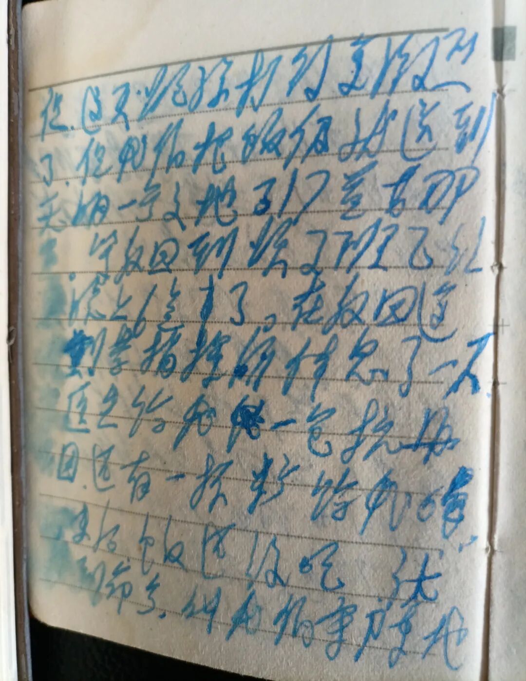 (王建龙战中日记,此页记载了他19日下午得到冯伟兴牺牲的情况和20日凌晨确认冯伟兴牺牲时的悲伤心情)