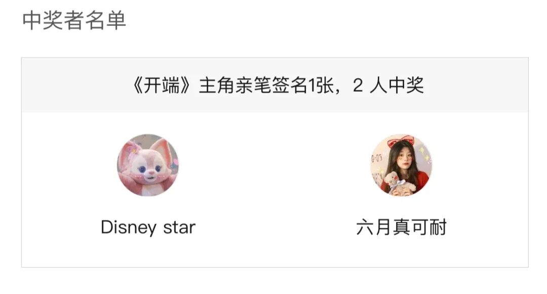 【中奖名单公布】