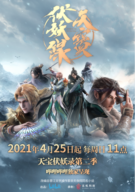 改编自晋江大神作者非天夜翔玄幻巨著《天宝伏妖录》同名动画第二季已于2021年4月25日起在哔哩哔哩独家呈现。