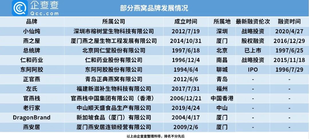 我国燕窝相关企业共1.1万家,2020年上半年新增789家.企查查数据.2020.09