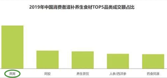 据艾瑞咨询,燕窝是2019年中国消费者滋补养生食材成交额第一,每10个买养生食材的人里就有3人选择燕窝。