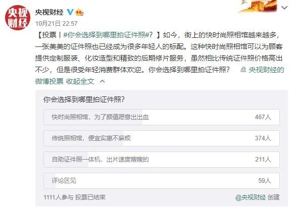 央视财经微博投票显示,“快时尚照相馆”名列第一。
