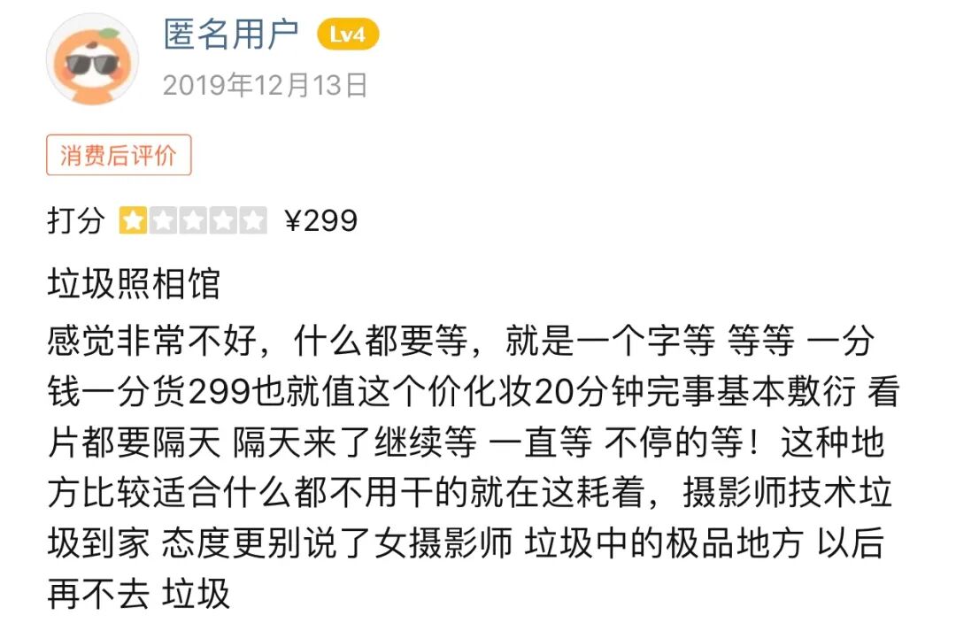 天真蓝和海马体的所有照相馆在新美大(大众点评&美团)上面的差评无一躲不过“等待时间太久”。