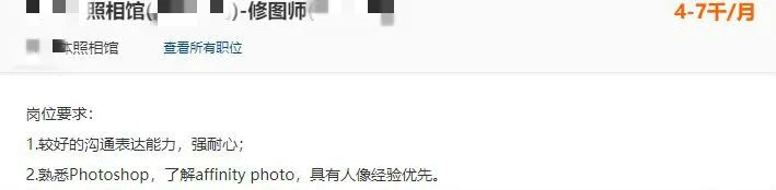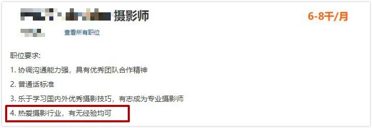 在某知名品牌快时尚照相馆的招聘网站上,摄影师招聘要求显示: