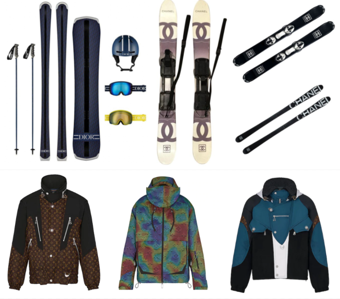 Chanel滑雪装备(左上)Dior滑雪装备(右上)LV滑雪服(下方)