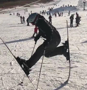 重心稳定的双板是初学者的诺亚方舟,还有两条雪杖打助攻,站上去适应下,就如同刚出生的小鹿稍加挣扎就可以尝试迈步。