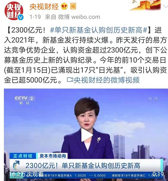 据央视财经,2020年我国公募基的发行规模达3.16万亿元,总规模壕无人性地突破18万亿,创历史新高。1月18日,易方达竞争优势更是打出2398亿刷新基金史上首募新纪录。