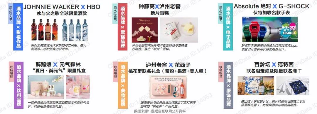 其实很多酒类品牌也注意到了年轻人对好玩的追捧,纷纷推出了一系列具有创意的联名产品。例如钟薛高和泸州老窖联名的白酒夹心“断片儿”雪糕、JOHNNIE WALKER和HBO推出的冰与火之歌联名限量酒等等,使年轻人趋之若鹜。