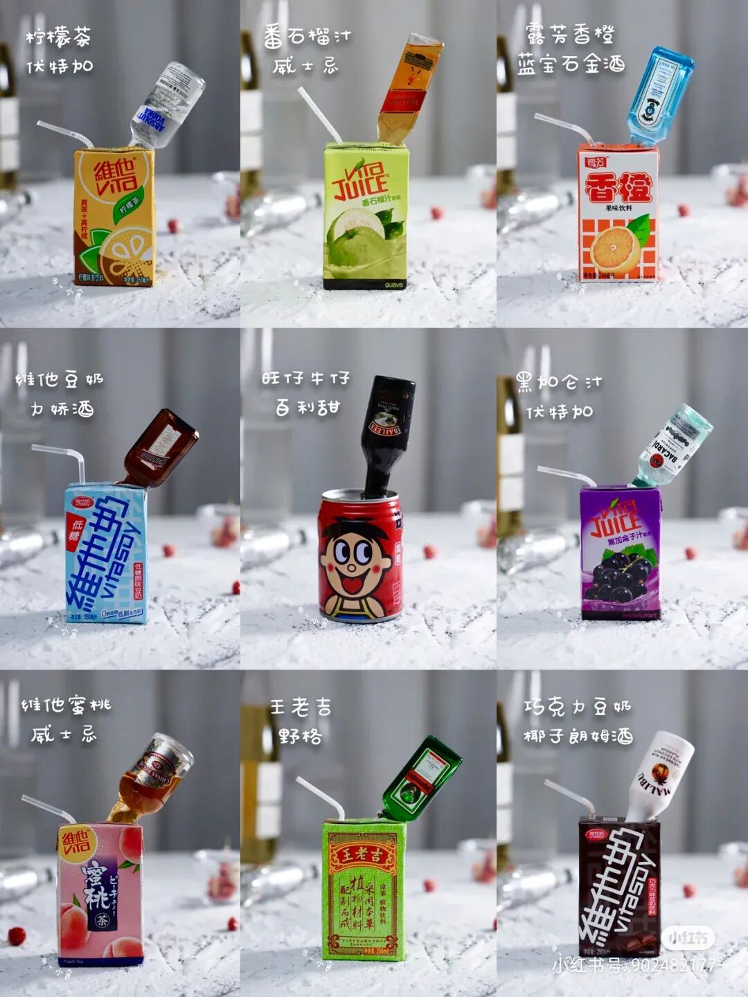 例如野格X维他茶、维他茶X伏特加、伏特加X橙汁、威士忌X可乐、百利甜X旺仔牛奶,总有一款让你觉得像那么回事。