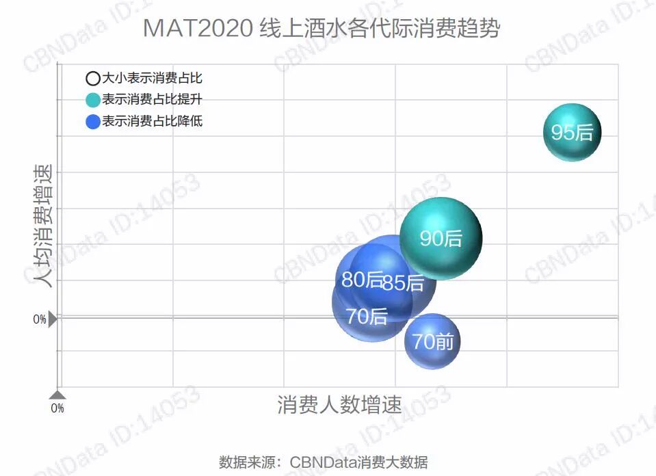 根据第一财经商业数据中心发布的《2020年轻人群酒水消费洞察报告》显示,中国酒水市场中正发生着年轻化的趋势,90及95后的消费占比有着明显的提升。年轻人显然更爱消费酒了。