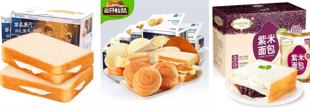 三只松鼠、良品铺子和百草味旗舰店里的20多元1kg一箱的加工型零售小面包卖得又快又多,最火的氧气吐司、乳酸菌小口袋、糯紫米面包等月销量不断在刷新。