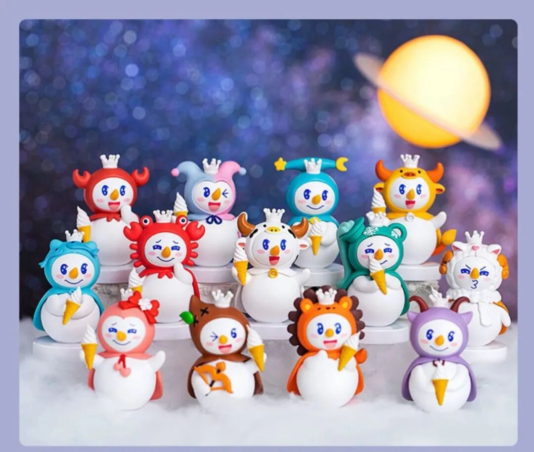 另一爆红的茶饮品牌蜜雪冰城也推出了雪王十二星座系列潮玩手办盲盒。一边丰富着雪王的故事和人设,一边推出潮玩等周边产品,是蜜雪冰城的策略。