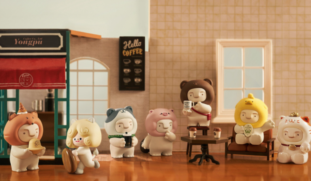主打艺术设计格调的咖啡品牌永璞也在今年6月以IP石端正为主,推出了第一个潮玩盲盒系列“动物咖啡师”。