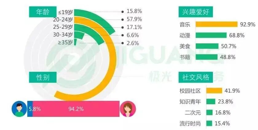《恋与制作人》用户画像,年龄在20-24岁的年轻女性为主要用户群体 。图by极光大数据iAPP 监测平台