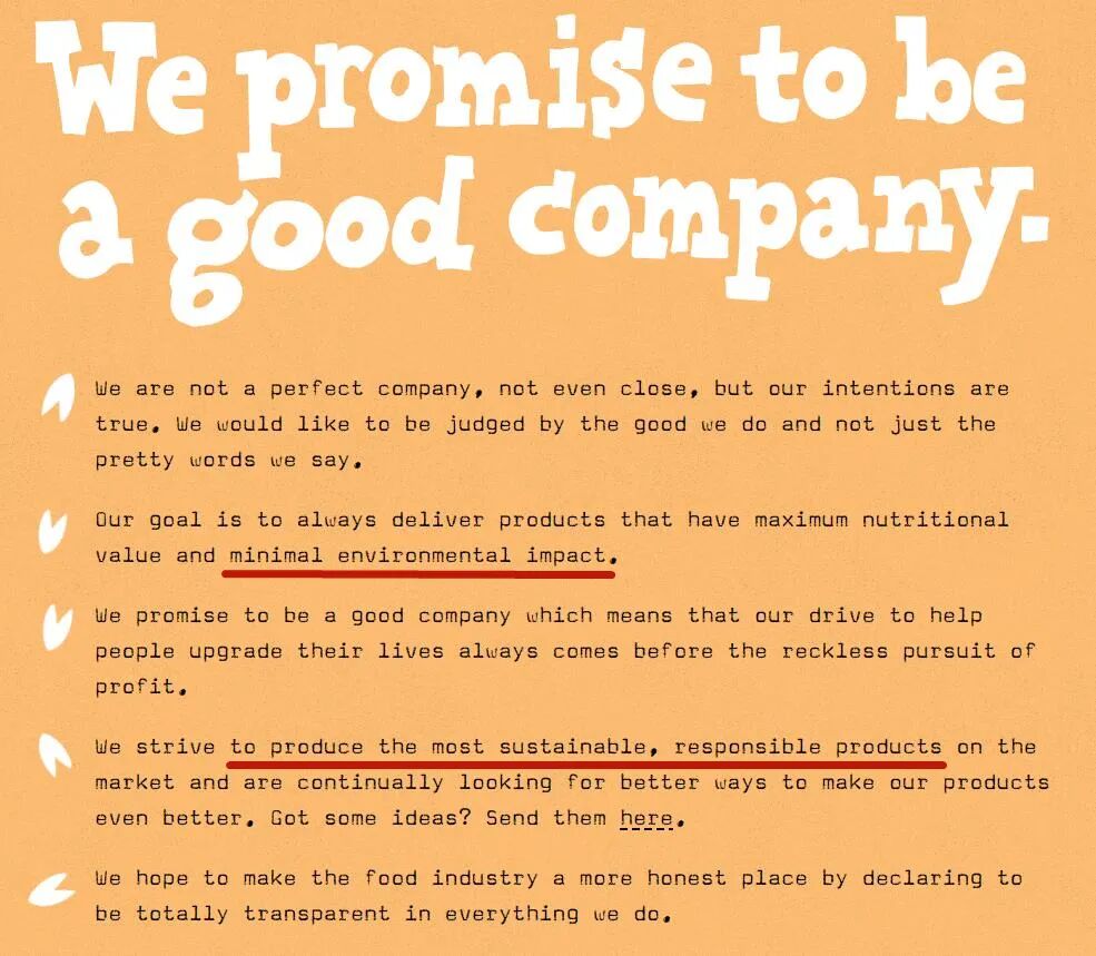 不仅如此,OATLY在其官网介绍公司理念的说明中多次提及了“环保”、“可持续发展”等价值,直击关怀自然环境的人们和部分中产人群的内心。