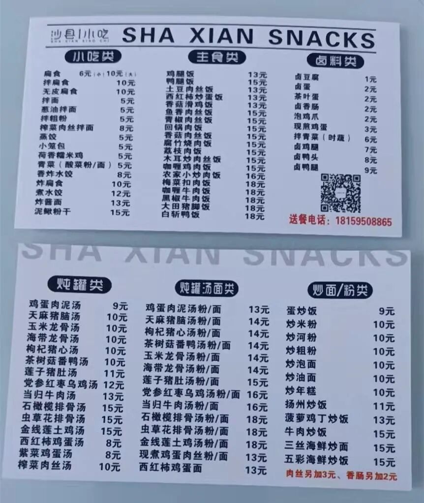 但溪哥特意发来菜单,菜品和价格都跟本地沙县小吃没有什么差别。“沙县做的是周边的长久生意,还是个平民化小吃,就算变成网红也没有意义。”