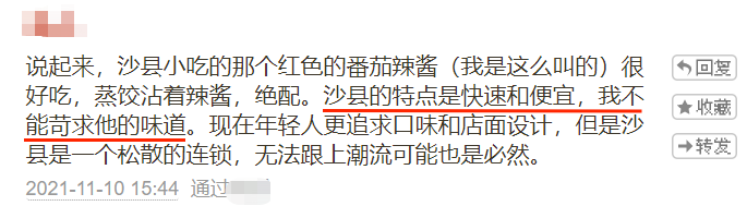 但时代在变。现代人的口味变刁了,曾经的学生工作了……沙县小吃几十年如一日的土味店招、差强人意的饱腹口感,让“沙县”在很多年轻人眼里,成了“低端”的代名词。