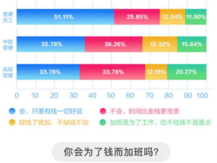 如果在报酬丰厚、公平合理的情况下,过半员工愿意加班。