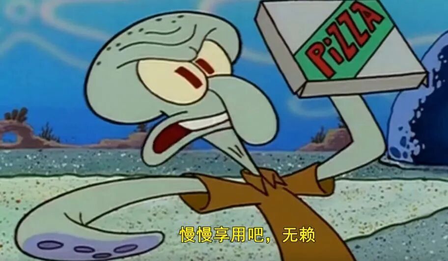 不忍海绵宝宝被刁蛮的顾客欺负,把披萨甩到顾客脸上这种得罪人的事由章鱼哥来做;