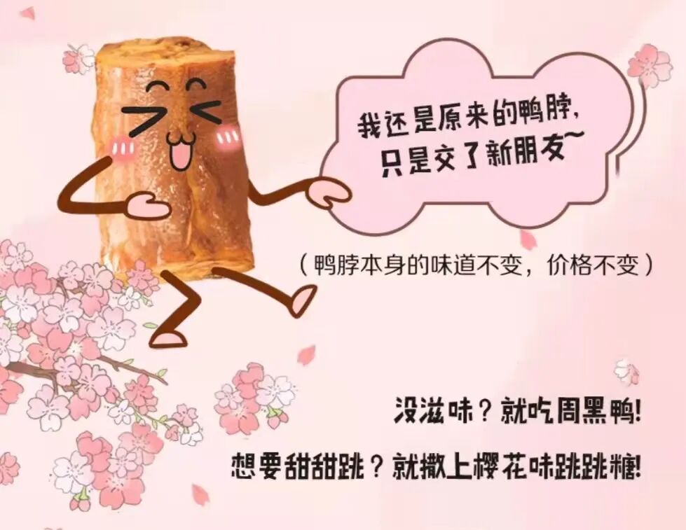 如果你深谙斯琴高娃和袁立老师的“羊胎素糊弄学”,那你一定不难理解今年最会糊弄的樱花限定——周黑鸭樱花跳跳糖味鸭脖。