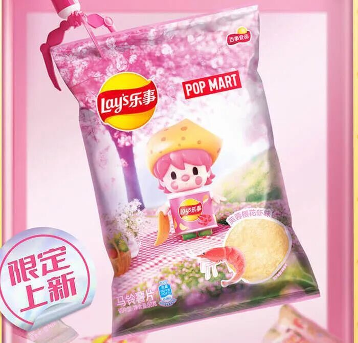 另一款樱花限定在糊弄学上也不遑多让——乐事芙蓉樱花虾味薯片。