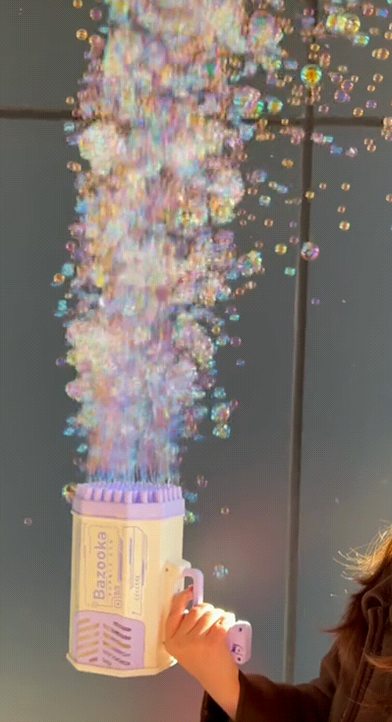 泡泡机立马开始进化,一次只出一个泡泡总难逃卖火柴的小女孩般的凄苦,劲儿足、量大成了新标准。