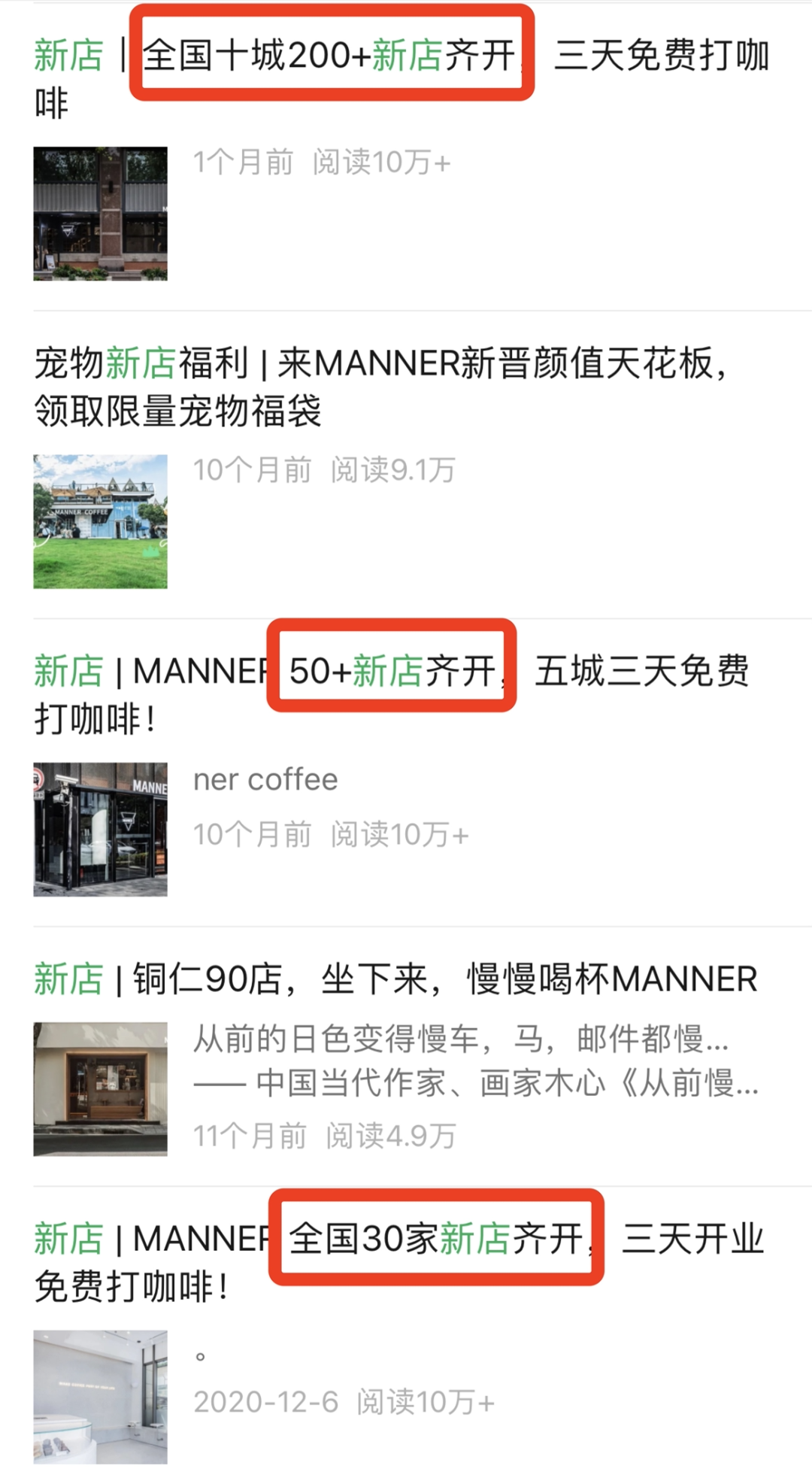 可就在一个月前,Manner一则“10城200店齐开”的微信推文曾引来业内外一片震动,半个多小时就阅读量超10万。没多久,Manner又宣布开通外卖,不少老粉喜出望外。