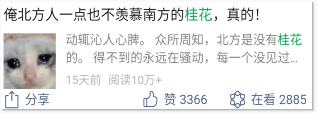 在南方人“我们有桂花”的骄傲中,在北方人“我也想闻桂花”眼巴巴的艳羡里,桂花引起了更多人的注意。