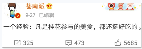 桂花味食物,味道通常都还不错. 图by微博、图虫创意