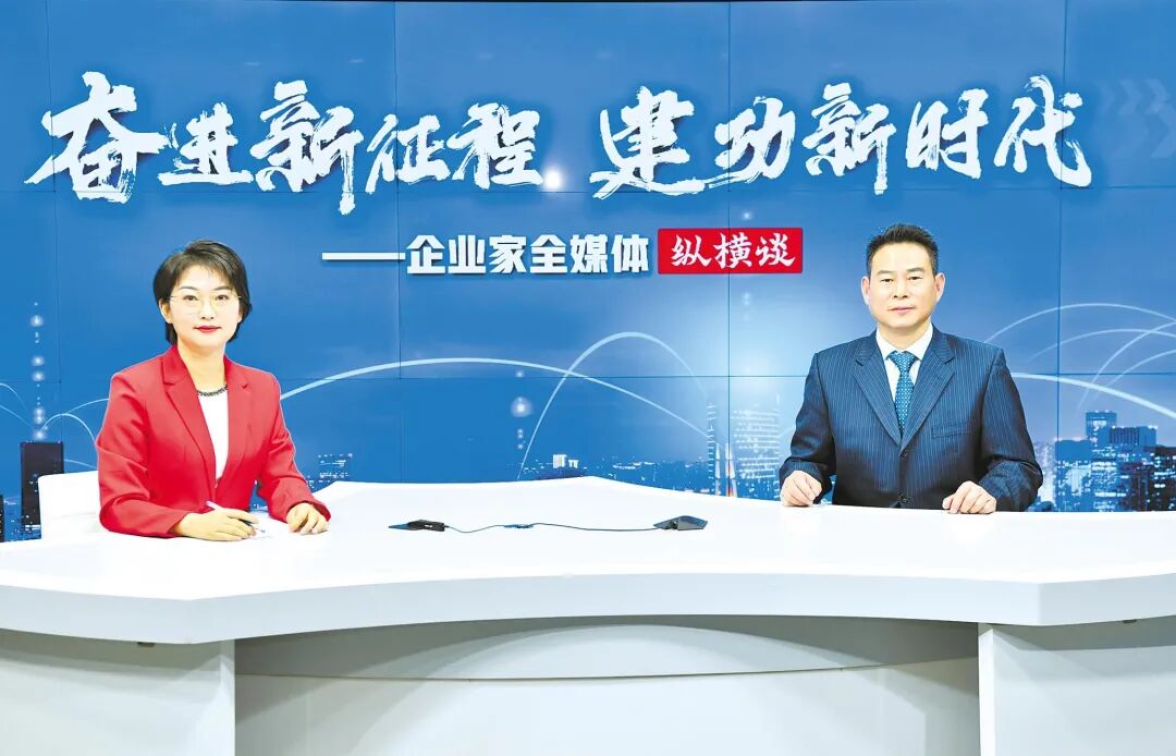 大力电工襄阳股份有限公司董事长、总裁高文广(右)做客湖北日报企业家全媒体纵横谈。(湖北日报全媒记者 魏铼 摄)