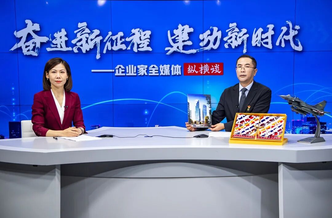 4月27日,保利发展控股湖北公司党委书记、董事长彭新哲(右)做客湖北日报企业家全媒体纵横谈。(湖北日报全媒记者 朱熙勇摄)