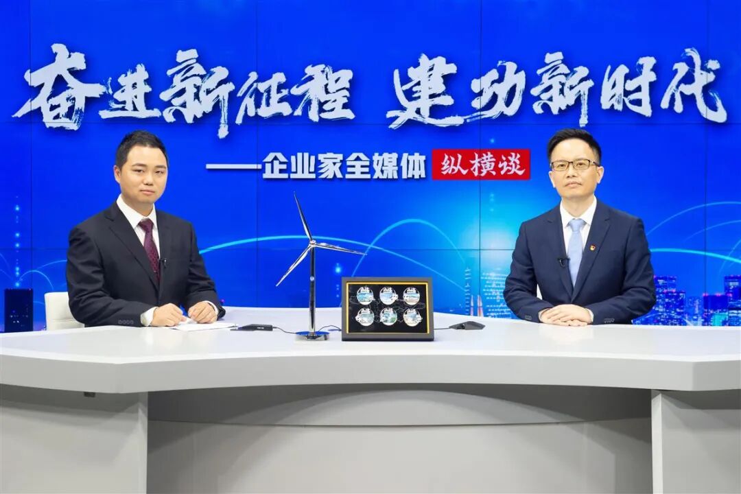 4月25日,湖北能源集团董事长、党委书记朱承军(右)做客湖北日报企业家全媒体纵横谈。(湖北日报全媒记者 何宇欣 摄)