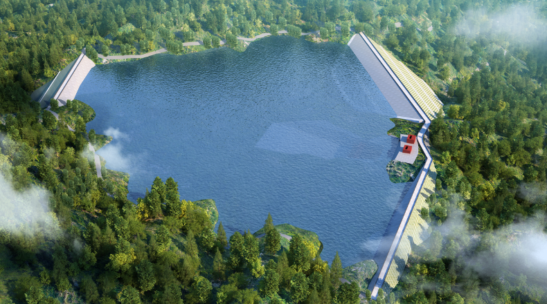 湖北能源集团罗田平坦原抽水蓄能电站上水库效果图