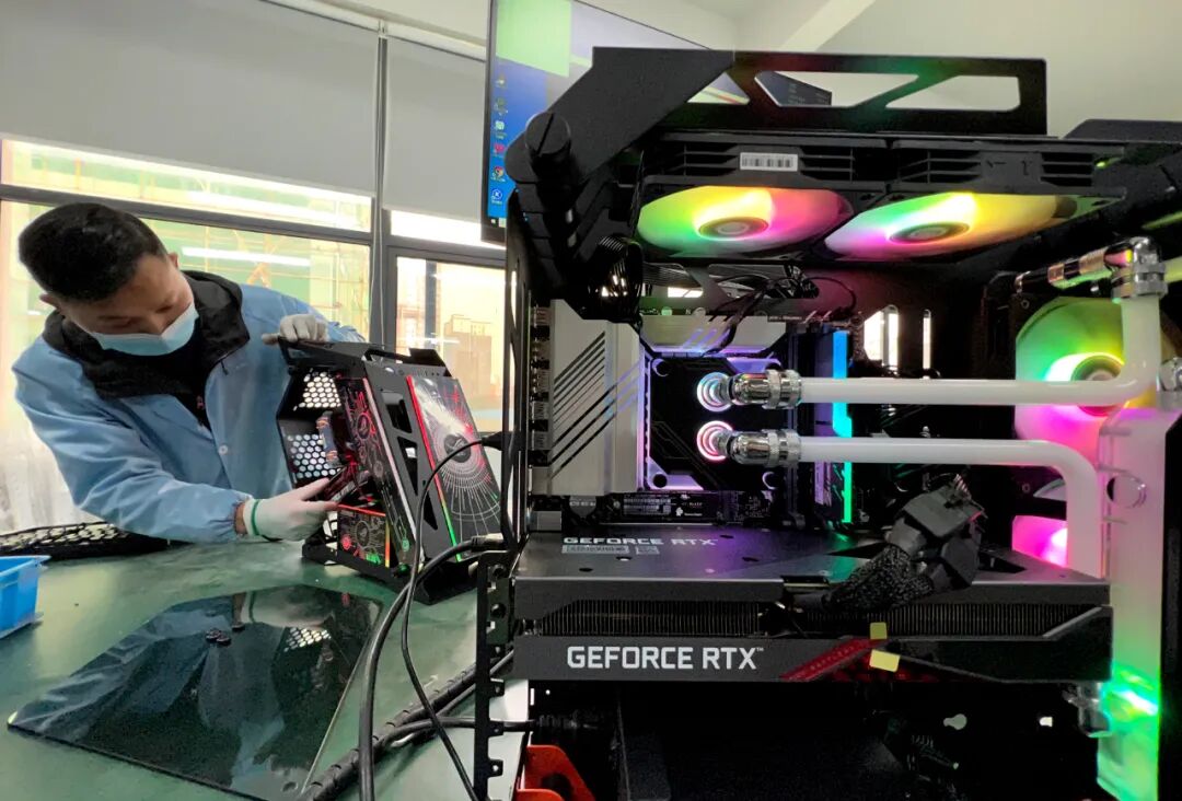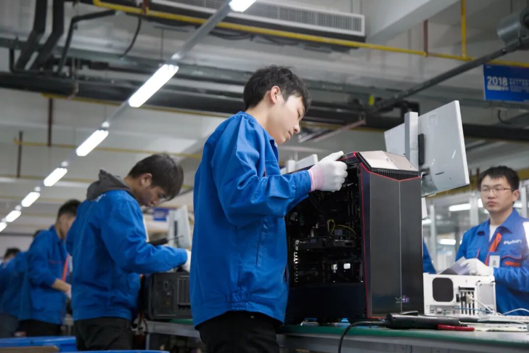 攀升科技园内工作人员正有序组装电脑(资料图)
